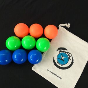 These are lightweight balls and have a pleasant matte finish. They are great for multi-ball jugglers due to their small size, and are also great for kids for the very same reason. We also have a variation with a soft plushy feel!